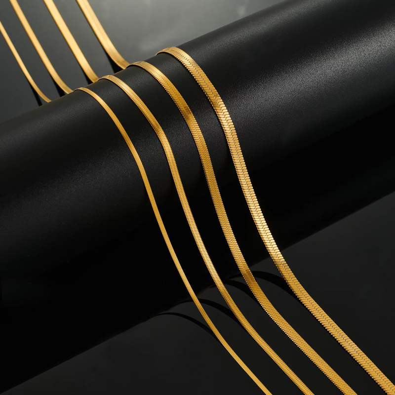 Stainless Steel Chain Gold Color Plated Necklace Fashion High Quality Blade Chain Men Women Choker Jewelry Accessories DIY Gift