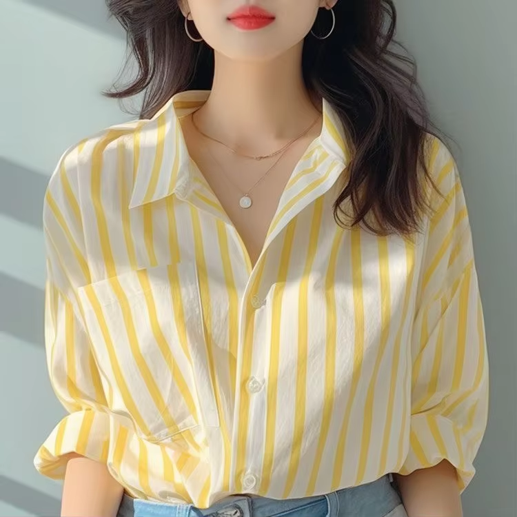 Striped Women Shirt Korean Style Long Sleeve Top Female Casual Autumn Fashion Woman Blouse 2024 Turn Down Collar Pocket Clothes