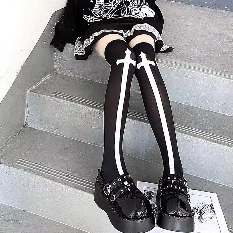 Subculture Classic Lolita Black Goth Cute Stockings Halloween Girls Gothic Punk Retro Spider Web Skull Bat Thigh High Long Socks