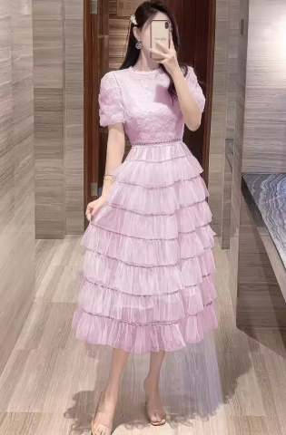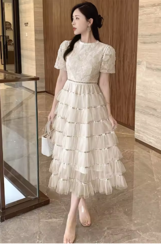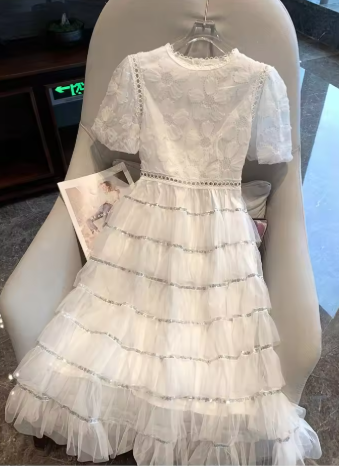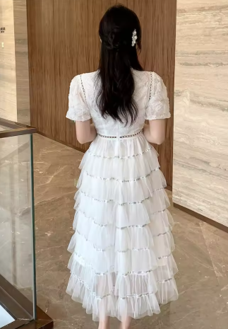 Summer Fairy Princess Mesh Sequined Embroidery Cascading Ruffles Layer Cake Dress Women Clothing Evening Birthday Party Vestidos
