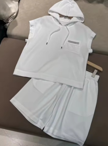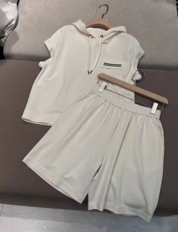 Summer high quality exquisitely trimmed cotton casual set of clothes with shorts