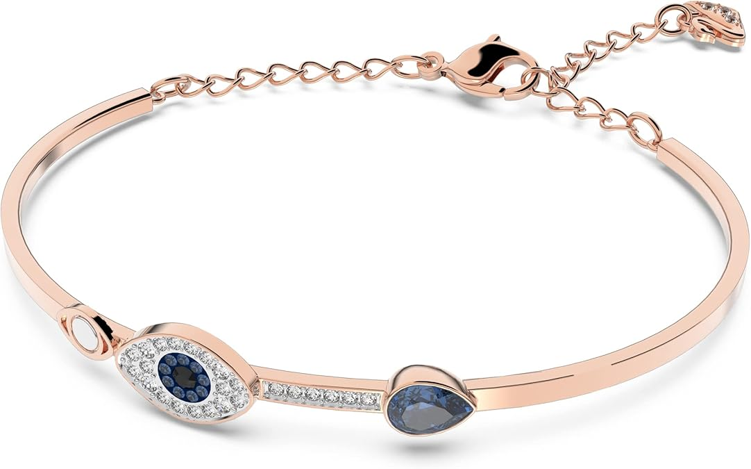 Swarovski Women's Symbolica Evil Eye Bangle Bracelet, Blue Crystal, Mixed Metal Finish, Medium