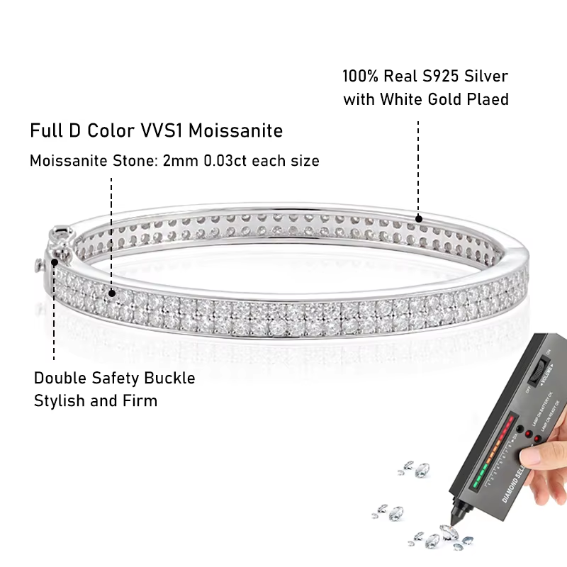 [Material] 925 Sterling Silver & Moissanite & Plated White Gold, style for Nickel-free, Lead-free, Cadmium-free, Hypoallergenic. Quality Assurance, good skin-friendly, convenient and comfortable to wear, not harmful for your health.