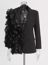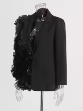 TWOTWINSTYLE Patchwork Ruffles Chic Blazers For Women Notched Collar Long Sleeve Spliced Pocket Designer Blazer Female Fashion