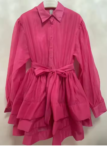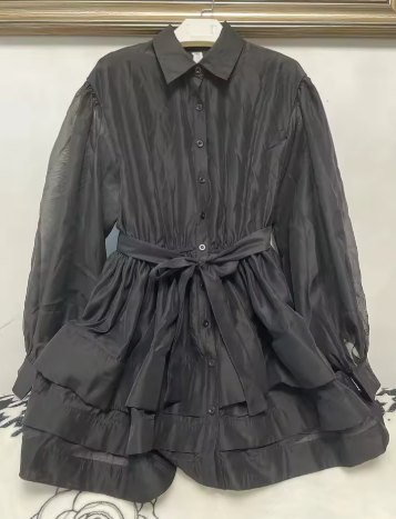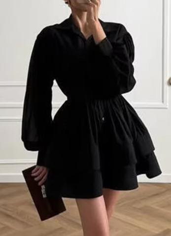 TWOTWINSTYLE Solid Spliced Lace Up Mini Dresses For Women Lapel Long Sleeve High Waist Temperament Patchwork Ruffle Dress Female
