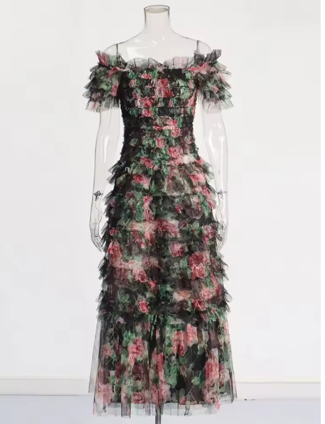 XL:Bust:94cm,Waist:88cm,Hip:126cm,Sleeve length:21cm,Length:127cm