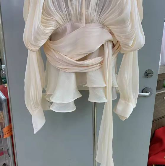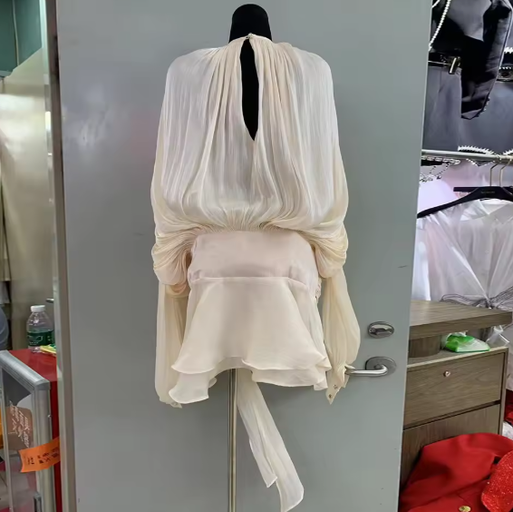 VGH Minimalist Solid Loose Short Dresses For Women Round Neck Long Sleeve High Waist Spliced Lace Up Chic Dress Female Fashion