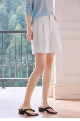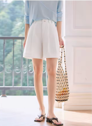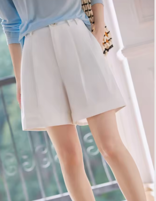 VIMLY Women Casual Shorts 2025 Summer Simple High Waist A-line Loose Wide Leg Cotton Shorts Chic Lady White Suit Shorts A0658