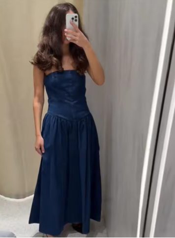 Women Denim V-neck Short Sleeved Long Dress Chic Slim Fit Single Breast Slit Vestidos New High Street Casual Solid Commuter Gown