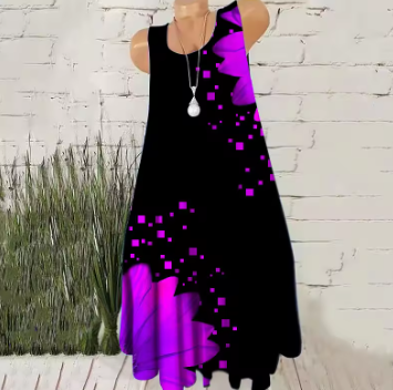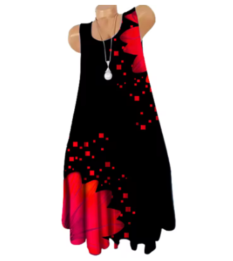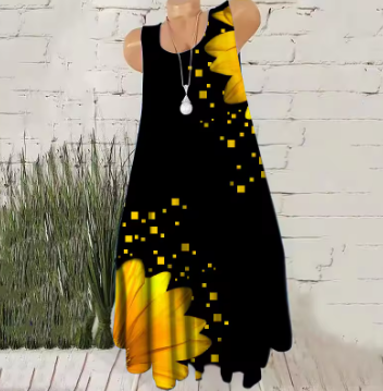 Women Fashion Mini Dresses Sleeveless 3D Tie-dye Floral Print Streetwear Short Dress Summer Loose Casual Oversized Dress