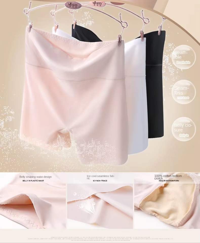 Women High Waist Panties Safety Short Pants Anti Exposure Underwear Corset Pants M L XL Black Skin White Ice Silk Traceless