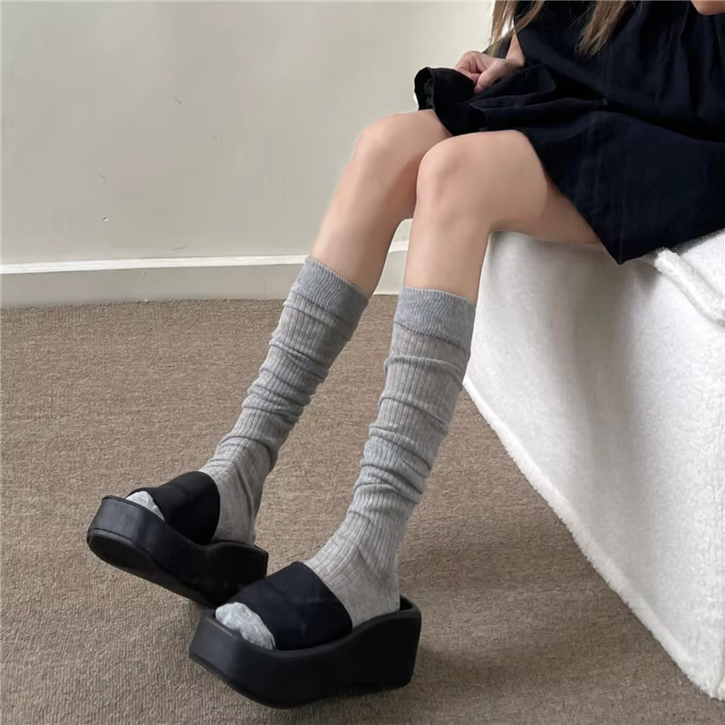 Women Thin Boneless Cotton Long Socks JK Lolita Striped Pile-up Stockings Trendy Breathable Soft Slim Knee High Stacked Socks