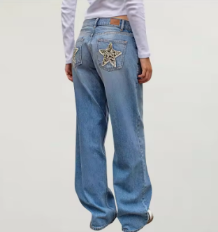 1. Unique Patches: Eye - catching star and other shaped patches on the back pockets add a distinct, edgy charm, making these jeans stand out.