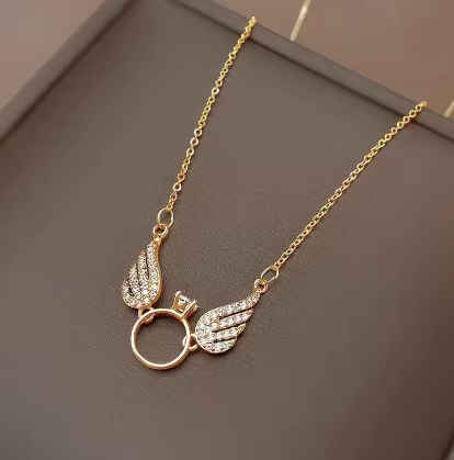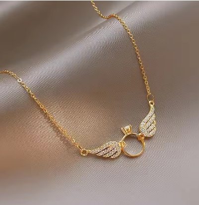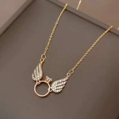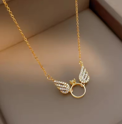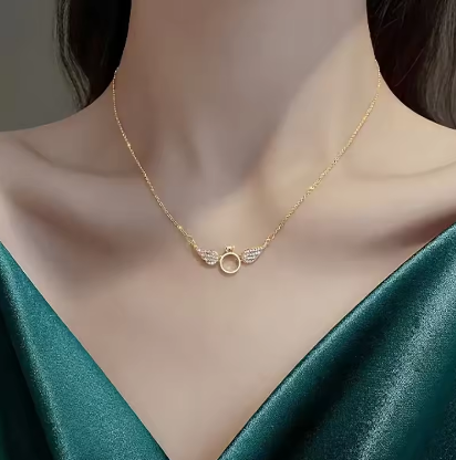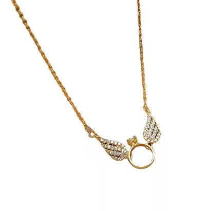 Women's jewelry AU750 vermiculite pendant small wings 18K gold necklace round ring pendant clavicle chain