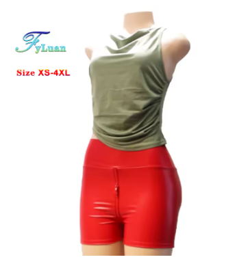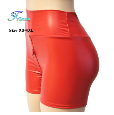 Women's Matte Leather Shorts, High Waist Bodycon, Push Up Black Shorts, Joggers, Sports Fitness, Sexy Wetlook Bodycon Clubwear