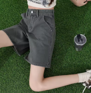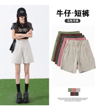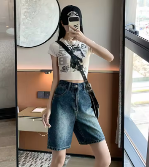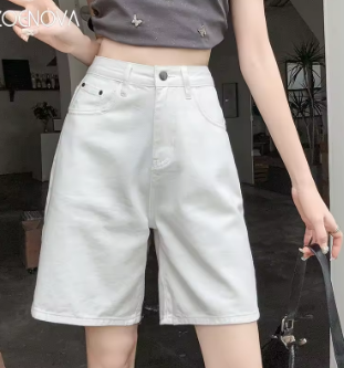 ZOENOVA Korean Street Fashion Cool Girl Simple White Denim Shorts Summer High Waist Loose Versatile Straight Five Quarter Jeans