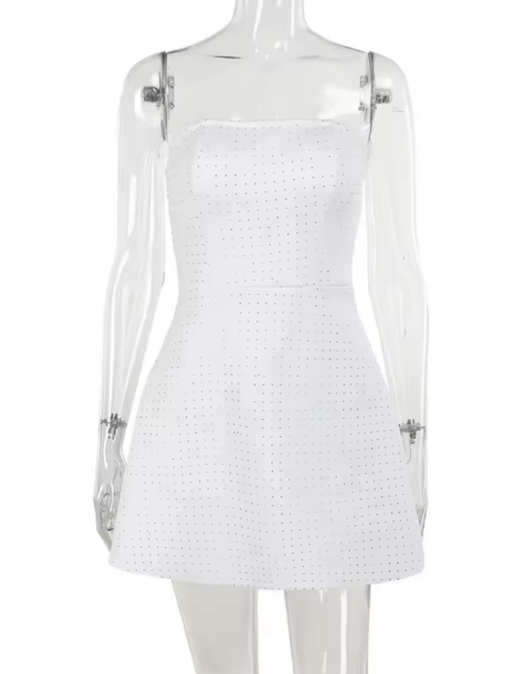 2025 Sexy Strapless Beading A-line White Dress Women Sleeveless High Waist Short Wrap Dresses Female Backless Party Prom Gowns