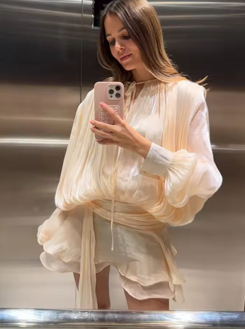 Fashion Ruffles Hem Solid Mini Dress Women Elegant O-neck Lantern Sleeve Short Dresses 2025 New High Street Vocation Vestidos