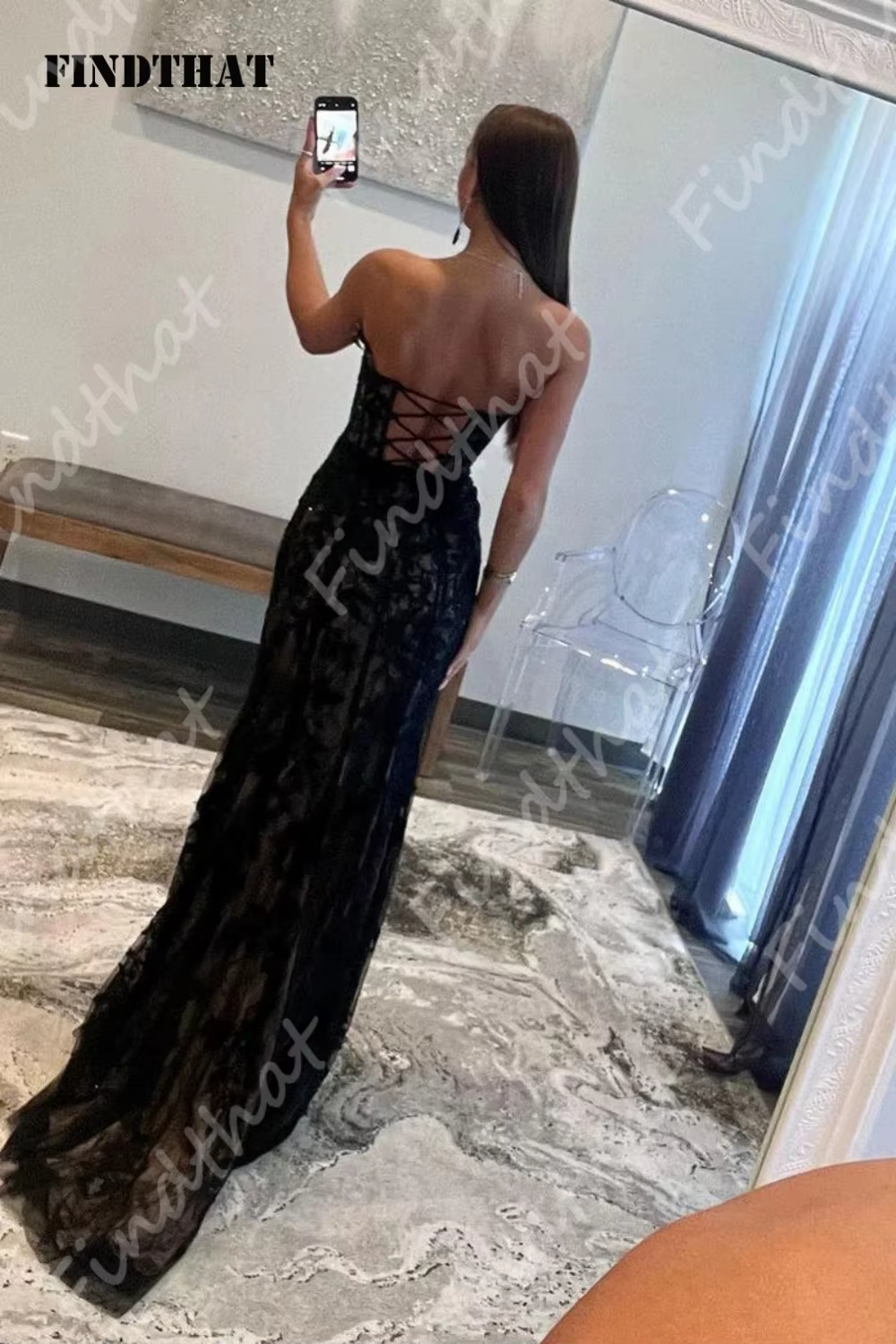 Findthat Charming Mermaid Sexy Black Wedding Party Dress Celebrity Dresses Lace Long Special Occasion Dress with Slit Customized