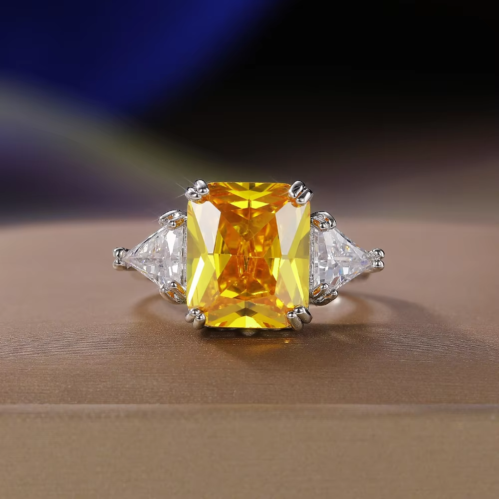 Huitan Geometric Shaped Yellow Cubic Zirconia Rings Silver Color Wedding Bands for Women Brilliant Accessories Party Jewelry