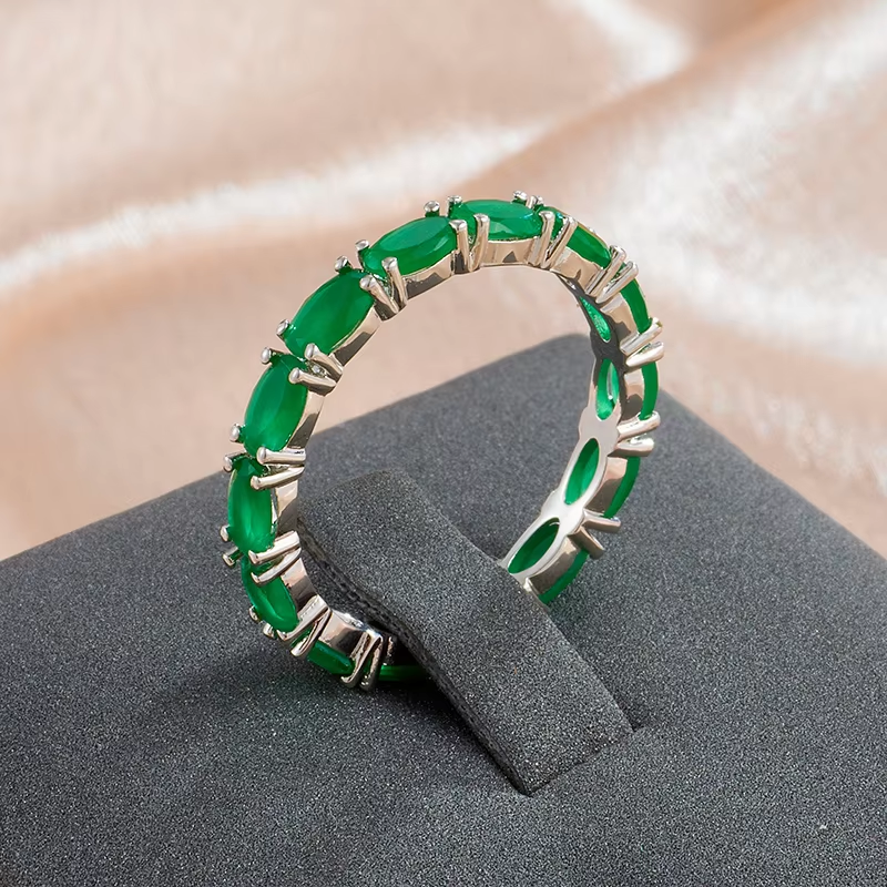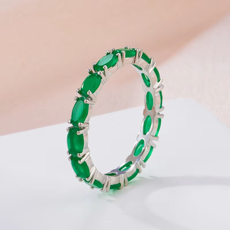 Kinel Full Opal Green Natural Zircon Women's Ring Tibetan Silver Vintage Wedding Bride Jewelry Luxury Design Best Gift For Girl