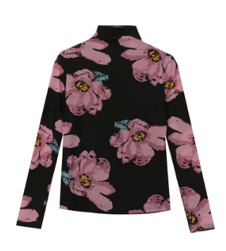 European Clothes Tshirt Women Turtleneck Fashion Print Slim Mesh Tops Long Sleeve Workwear Tees Autumn Winter