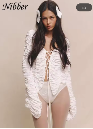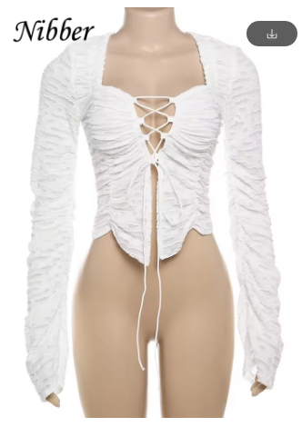 Nibber Ripped Chic Crop Tops Women Autumn Elegant Shirring Square Collar Elegant Cross Ruched Full Sleeve Solid Streetwear Tees