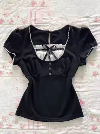 Punk Sexy Tops Y2k Vintage Clothes 90s Women Black Gothic Lace Slim Harajuku Bady Tee Crop Top Graphic T shirt Girl Summer Tee