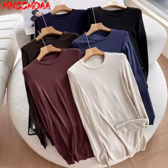 T Shirt Women 2024 Autumn Fashion Loose Round Collar Tops Female Solid Color Casual Long Sleeves Tee