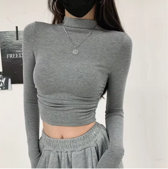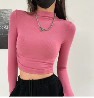 Turtleneck Long Sleeveless Women's T-shirt 2024 Spring New Fashion Crop Top Tees Y2K Tops Female Coquette Korean Popular Clothes