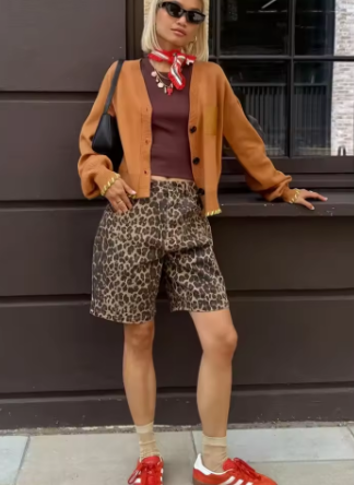 Wolfeel Retro Leopard Print Shorts Women Fashionable High Waisted Knee Casual Pants New Street Style Female Pocket Loose Shorts