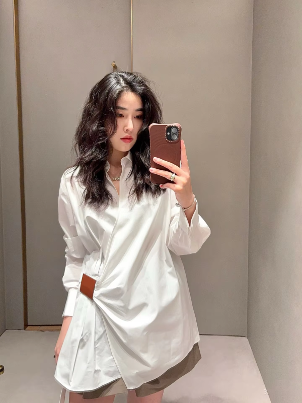 Women Shirt Spring Summer Solid Turn-down Collar Folds Lace-up Mid-length Blouse Office Lady Trendy Basics Loose Female Clothes