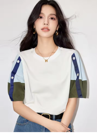 Women's Fashion Summer Casual T Shirt Short Sleeve O-Neck Korean Style Splicing Design Tee Loose Tops