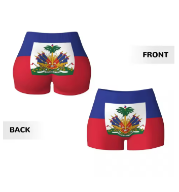 Women's Yoga Shorts Haiti Flag Style Scrunch Booty Butt Lifting Comfort Fitness Gym